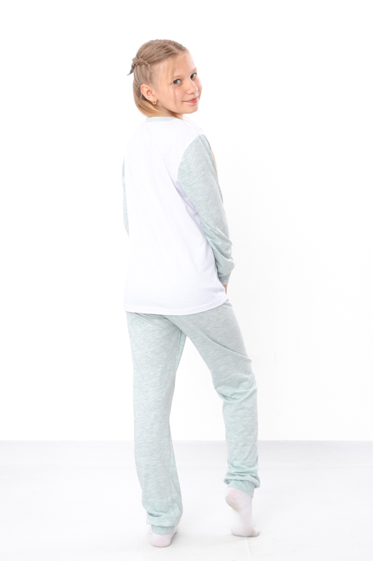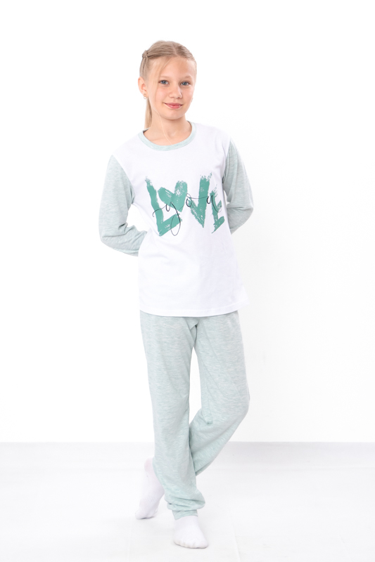 Піжама для дівчинки підліткового віку з довгим рукавом, виконана з куліру однотонного меланжу, ідеально поєднує в собі комфорт, якість і сучасний стиль. Цей одяг створений з натуральної бавовняної тканини, яка має приємну на дотик текстуру та забезпечує оптимальну циркуляцію повітря, що особливо важливо для здорового сну. Завдяки меланжевому забарвленню піжама виглядає дуже стильно та сучасно, а однотонність робить її універсальною і легко поєднуваною з іншими речами.