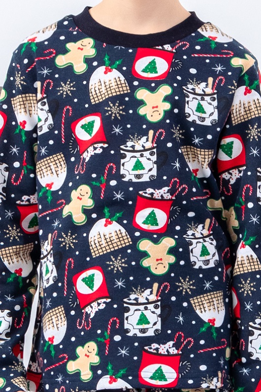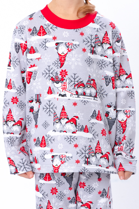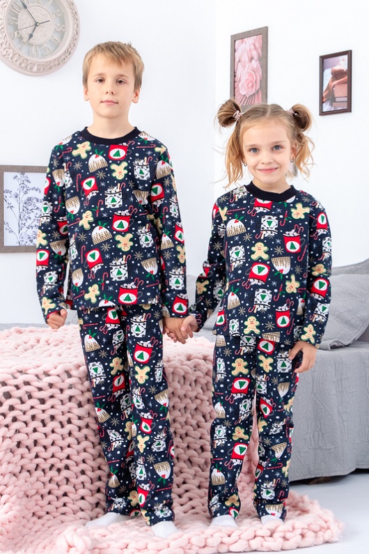 Дитячий одяг для сну має бути особливо якісним і зручним. У комплекті - класична пара:иштани і кофта з довгим рукавом. Штани прямі. На талії вони тримаються за допомогою резиночки. Модель виконана з принтованого начосу, який декорований новорічним принтом.