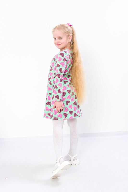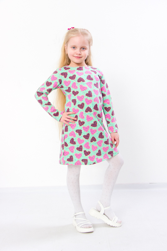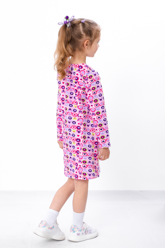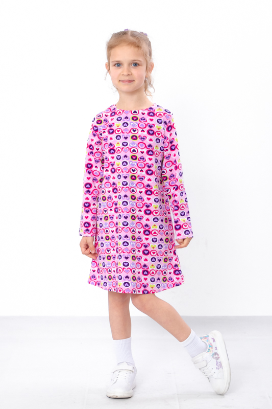 Сукня має довгий рукав, який забезпечує додатковий захист від прохолоди, тому її можна носити як у приміщенні, так і на вулиці. Принтована тканина додає виробу яскравості, грайливості та індивідуальності. Це можуть бути як ніжні квіти, так і веселі дитячі мотиви, які підкреслюють настрій маленької модниці та роблять образ завершеним без зайвих аксесуарів.