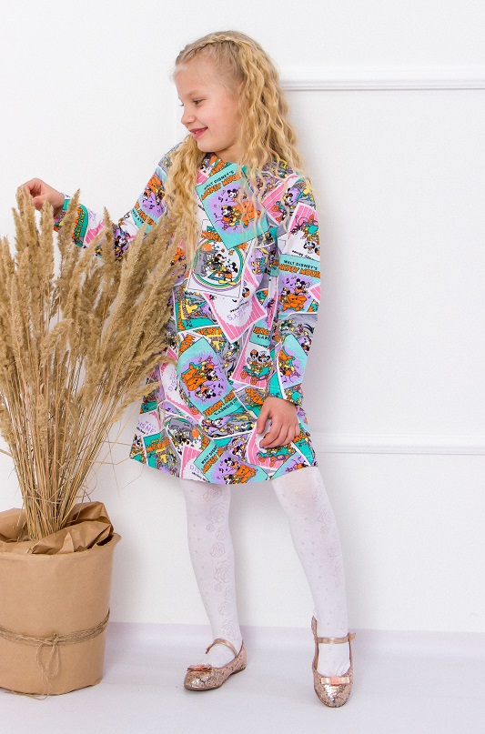Стильна, зручна сукня для дівчинки з довгим рукавом зшита з набивної двонитки, у складі якої бавовна (80%), поліестер (17%) та еластан (3%), комфортний матеріал, приємний на дотик і повітря, що пропускає. Невелике додавання лайкри покращує міцність тканини та дозволяє одягу довше зберігати форму. Позаду виріб застібається на маленьку кнопку. Модель легко прати, вона не втрачає при цьому початкові властивості та зовнішній вигляд. Сукня відмінно підійде як для повсякденного носіння, так і для урочистих випадків.