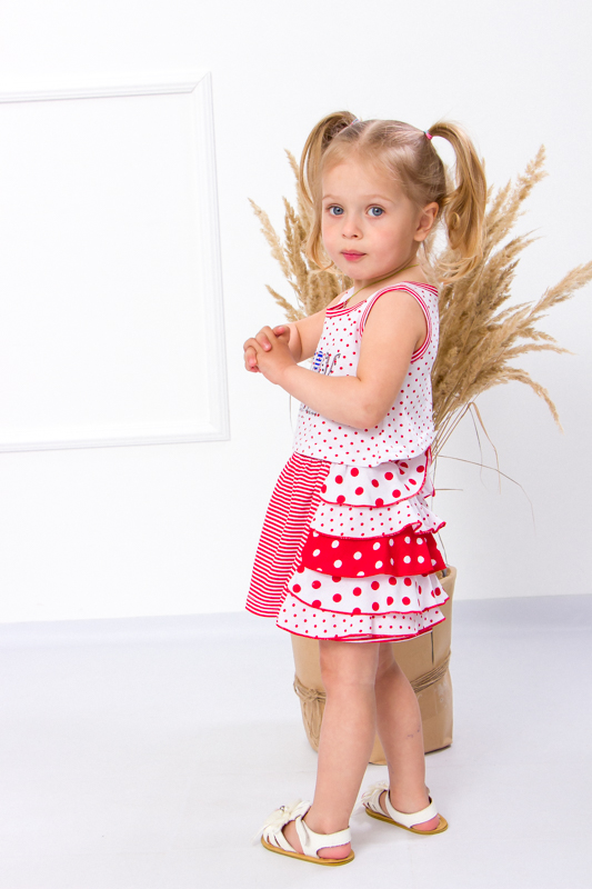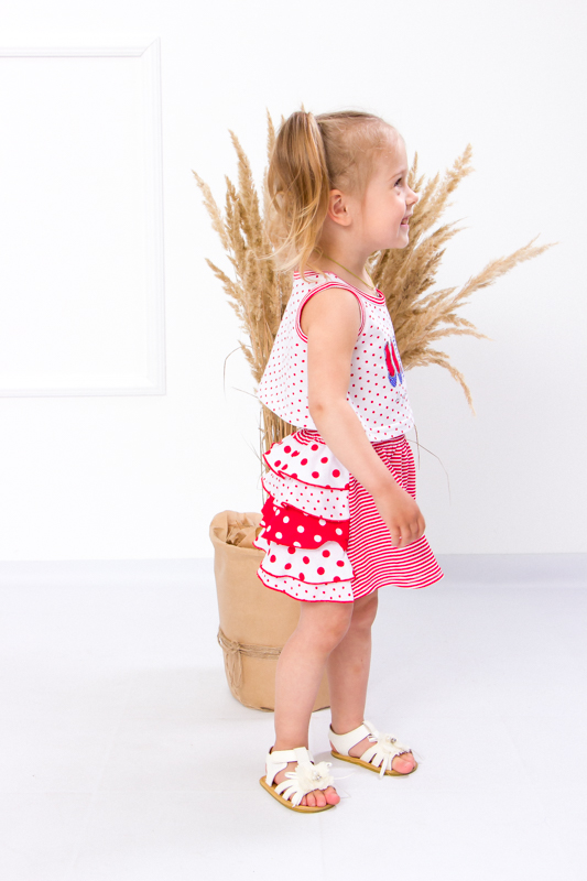 Незвичайний, дуже легкий комплект для дівчинки "Мальвіна". Модель пошита з легкого полотна - набивного куліра. Акуратний топ вільного крою, оздоблений чарівним накатом. Спідниця на комфортній резинці, спереду рівна, ззаду доповнена п'ятьма воланами. Виріб завжди практичний, актуальний і універсальний. У цьому фасоні кожна дівчинка буде в центрі уваги на будь-якому святі.