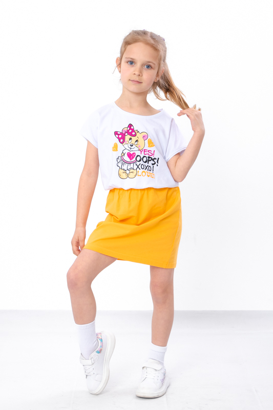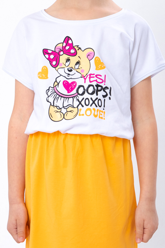 Нижня частина виробу — однотонна, виконана з тієї ж фулікри. Такий дизайн створює приємний візуальний баланс між яскравим верхом та спокійним низом, дозволяючи сукні виглядати гармонійно. Крій вільний і зручний, що забезпечує повну свободу рухів — ідеально для прогулянок, садочка чи шкільних буднів. Матеріал приємний до тіла, м’який та дихаючий, чудово підходить для теплої пори року, адже не парить та не сковує рухів.