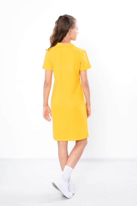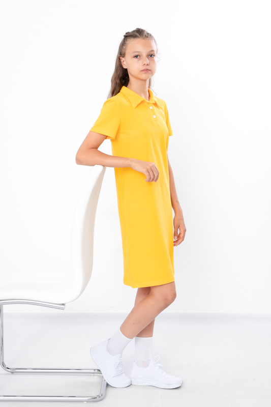 Сукня-поло для дівчинки - це стильний і зручний одяг, який поєднує в собі елементи спортивного стилю з елегантністю. Має класичний прямий крій, що не обмежує рухів, комір з планкою на гудзиках, короткі рукава. Пошита з полотна – лакоста. Дане полотно міцне та здатне зберігати форму. Така сукня ідеально підходить для теплих днів і може використовуватися як на прогулянці, так і для шкільних заходів чи ігор на відкритому повітрі.