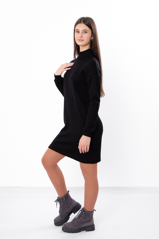 Ця сукня ідеально підходить для прохолодної погоди. М'який, приємний до тіла матеріал забезпечує комфорт, а висока горловина зігріває у холодні дні. Завдяки двосторонній текстурі тканина виглядає елегантно та стильно. Матеріал неймовірно приємний до шкіри, добре тягнеться та зберігає тепло. Завдяки двосторонній текстурі сукня виглядає ефектно та довго зберігає гарний вигляд після прання. Не сковує рухів, підходить для школи та прогулянок. Ідеально поєднується з черевиками, кросівками або чобітками.