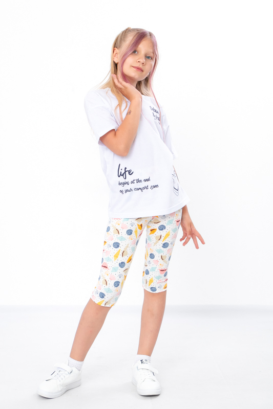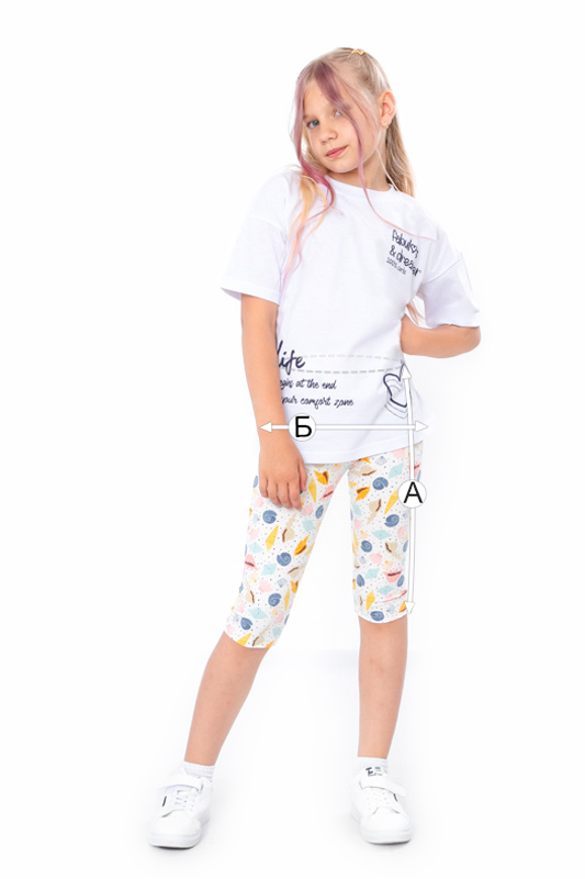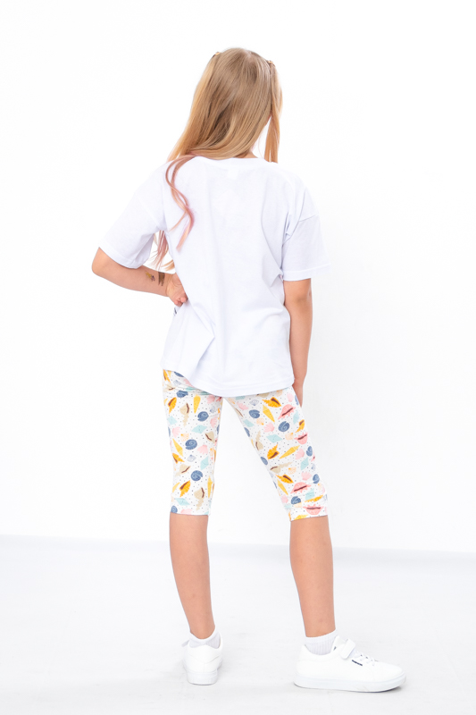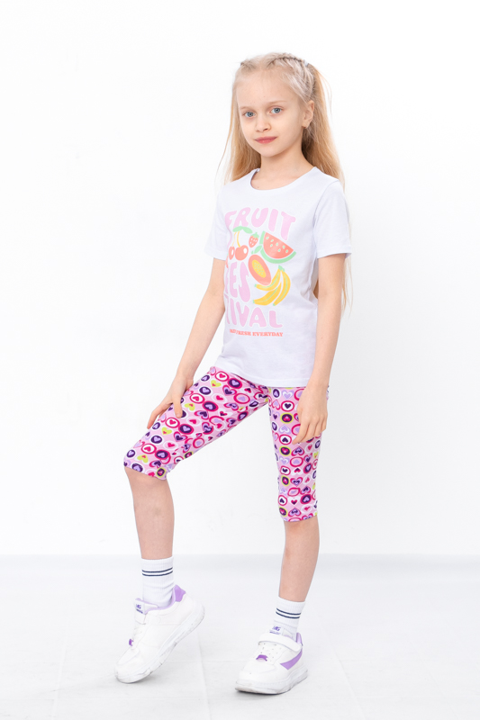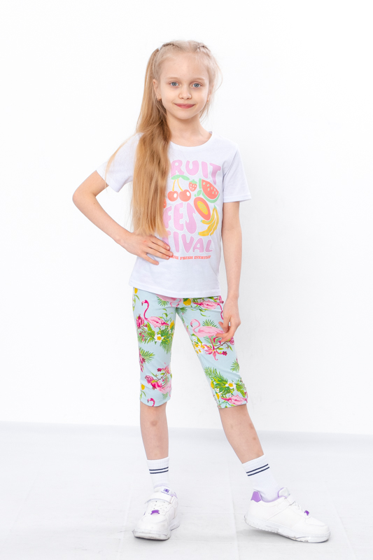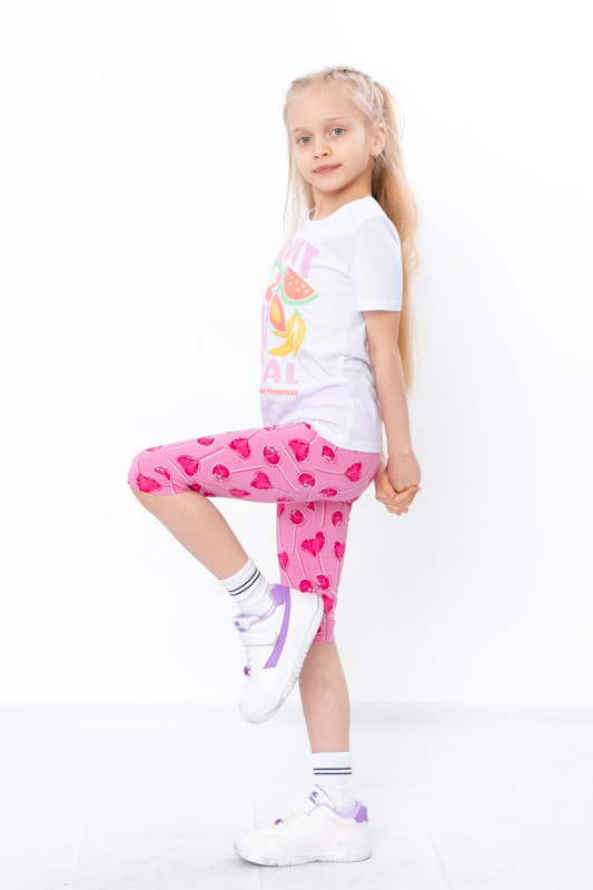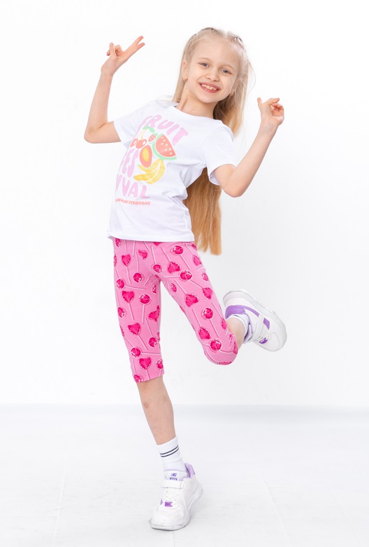 Треси для дівчинки – ідеальний варіант для прогулянок влітку. Пошиті з принтованого трикотажного полотна – фулікра. Полотно гарної якості, при правильному догляді не дає усадку, не линяє, завдяки наявності еластану в складі не витягується. Треси трохи нижче коліна, на резинці. Яскраві кольори обов’язково сподобаються дівчатам.