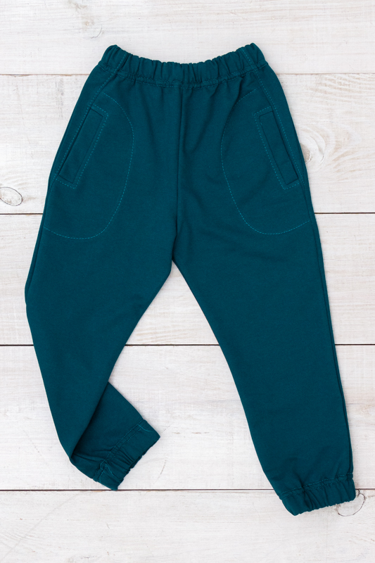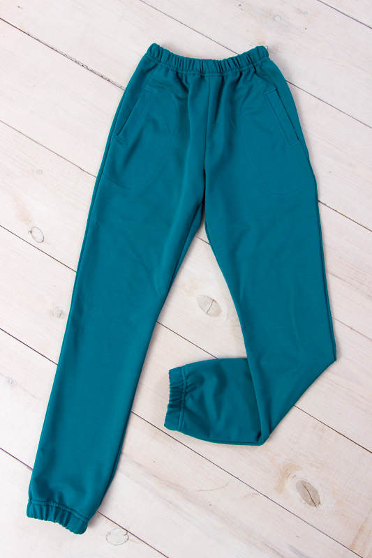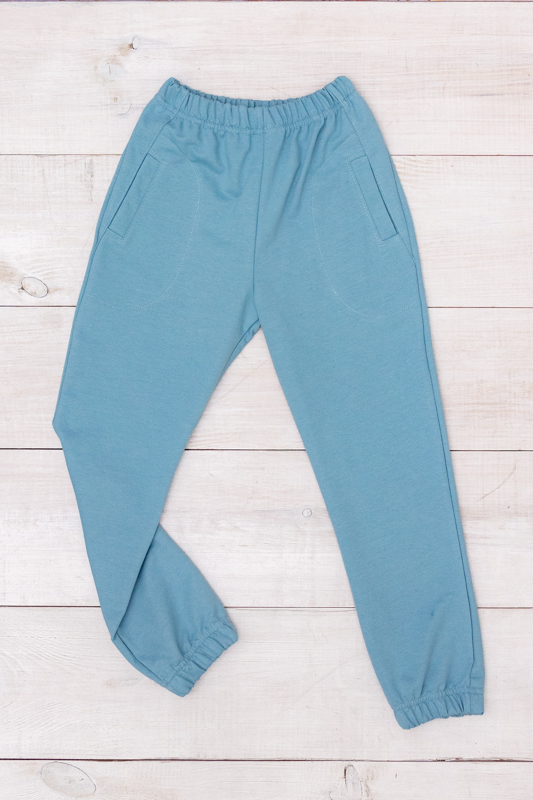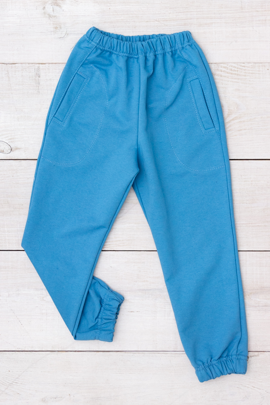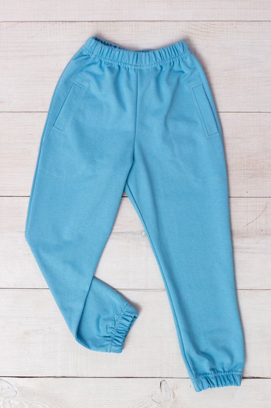 Модель виконана з полотна - двонитка. Трикотаж мало мнеться, відрізняється своїм повітрообміном. Пояс штанів та нижня частина на резинці. Штани доповнені кишенями для зручності.Спортивні штани відмінно підійдуть для занять фізкультурою, а також для активного відпочинку, поїздок на природу і для використання в якості домашнього одягу.