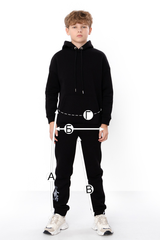 | А - Довжина штанів по бічному шву, +/-2см | 76 | 80 | 84 | 88 | 91 | 94 | 98 |