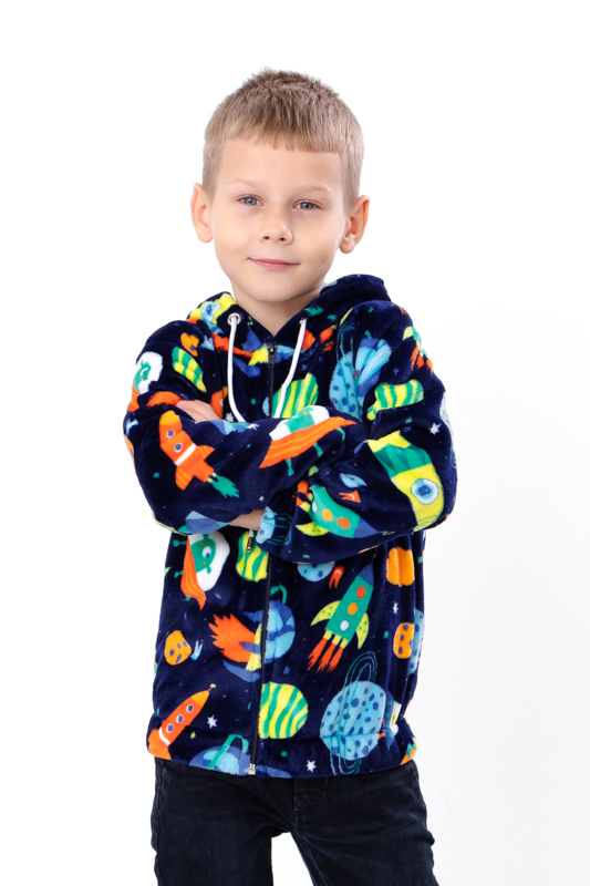 Теплий, м'який джемпер стане незамінним одягом малюка і ідеально підійде для прогулянок в прохолодну погоду. Дитині в такому виробі максимально комфортно і тепло. Цією річчю можна чудово доповнити практично будь-який образ. Модель виконана з набивної махри. В такому одязі з рваної махри малюк не спітнієте ніколи. Джемпер з капюшоном, по всій довжині застібається на блискавку. Він буде чудово виглядати як на дівчинці, так і на хлопчику.