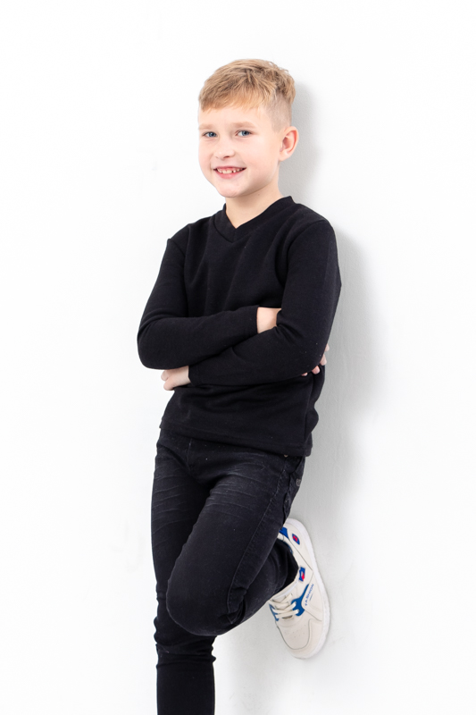 Джемпер для хлопчика з щільної ангорки — це теплий, м’який та стильний варіант для холодної пори року. Виготовлений з однотонної ангорської тканини, він поєднує в собі комфорт, затишок і привабливий зовнішній вигляд, що робить його чудовим вибором для школи, прогулянок або святкових заходів. Щільна ангора приємна на дотик, м’яко прилягає до тіла, не колеться та чудово зберігає тепло, забезпечуючи дитині відчуття комфорту протягом усього дня.