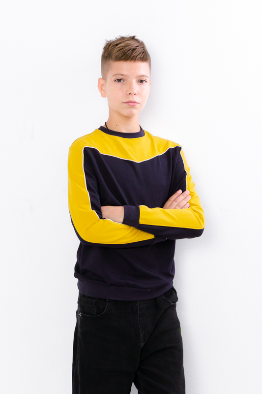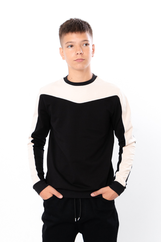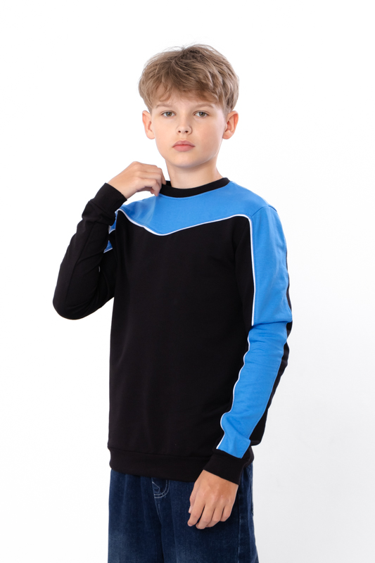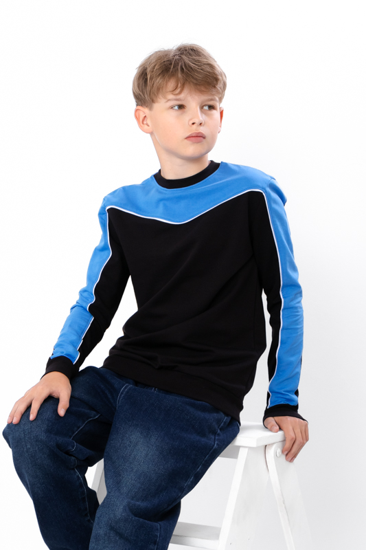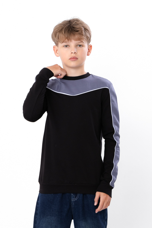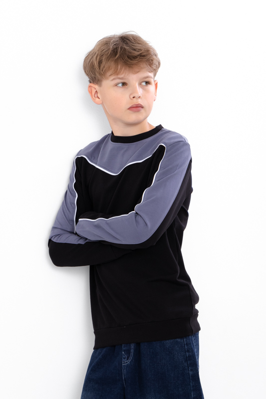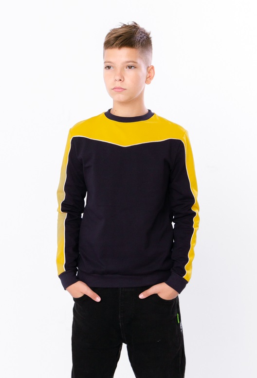 Класичний джемпер для хлопчика пошитий з однотонної двонитки в комбінації двох кольорів. Джемпер з довгими рукавами та округлим вирізом, на рукавах широкі еластичні манжети. Така модель відмінно поєднується з джинсами та кросівками або кедами. Полотно гарної якості. Тому, при правильному догляді, джемпер можна буде носити не один сезон. Може давати усадку після прання.