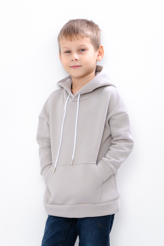 Стильне худі для хлопчиків із однотонної трьохнитки — ідеальний вибір для повсякденного носіння. Завдяки вільному крою, худі забезпечує максимальний комфорт та свободу рухів. Великий капюшон надає моделі спортивного вигляду, а містка кишеня "кенгуру" додає практичності.