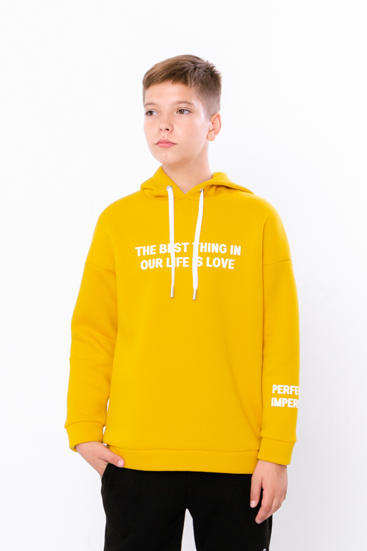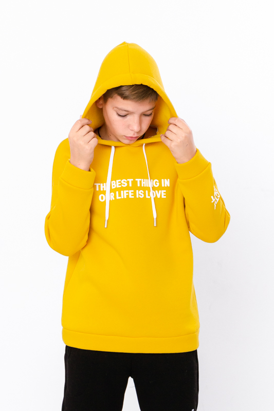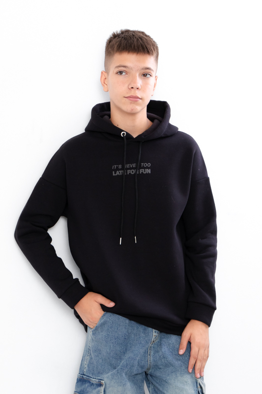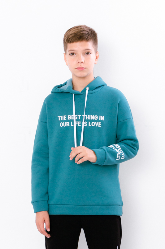 Худі для хлопчика — ідеальний вибір для стильного та зручного повсякденного образу. Виготовлена з м'якого гладкого трикотажу трьохнитка з флісом усередині, який надає їй неймовірної м'якості та пухнастості, забезпечуючи комфорт упродовж усього дня в прохолодну погоду. Худі має капюшон, манжети на рукавах та на поясі, нанесений актуальний принт.