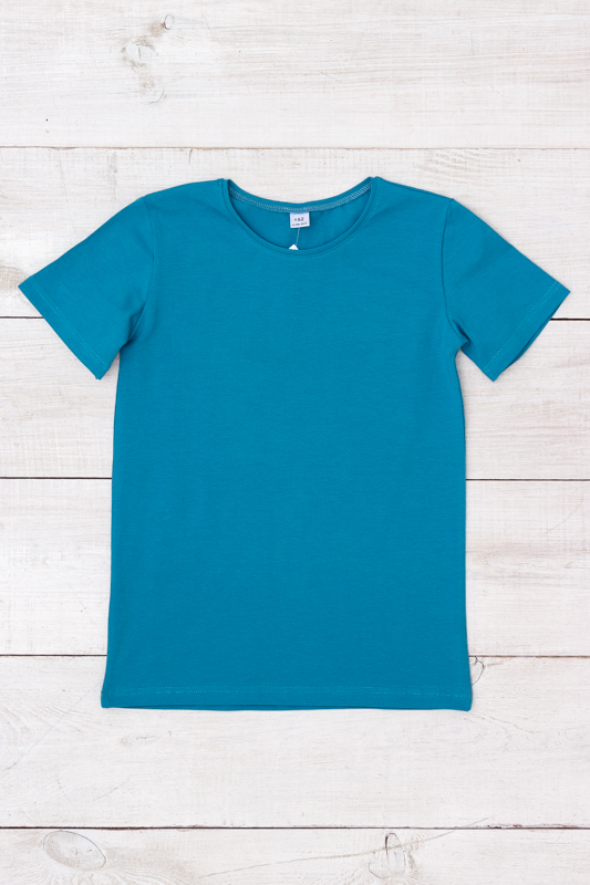 Базова однотонна футболка із трикотажного полотна – фулікра. Зшита в кількох кольорах на будь-який смак. Футболка прямого крою з короткими рукавами та круглою горловиною. Можна поєднувати із джинсами, шортами. Полотно гарної якості, при правильному догляді не дає усадки, не линяє, завдяки наявності еластану у складі не витягується.