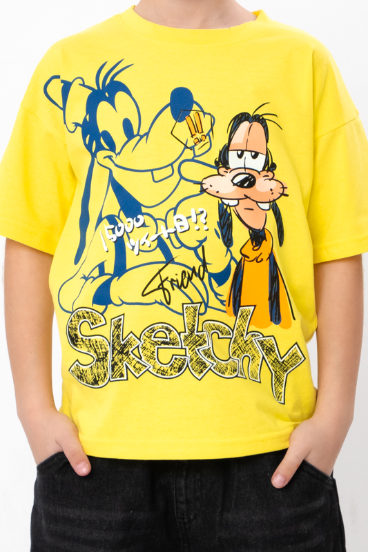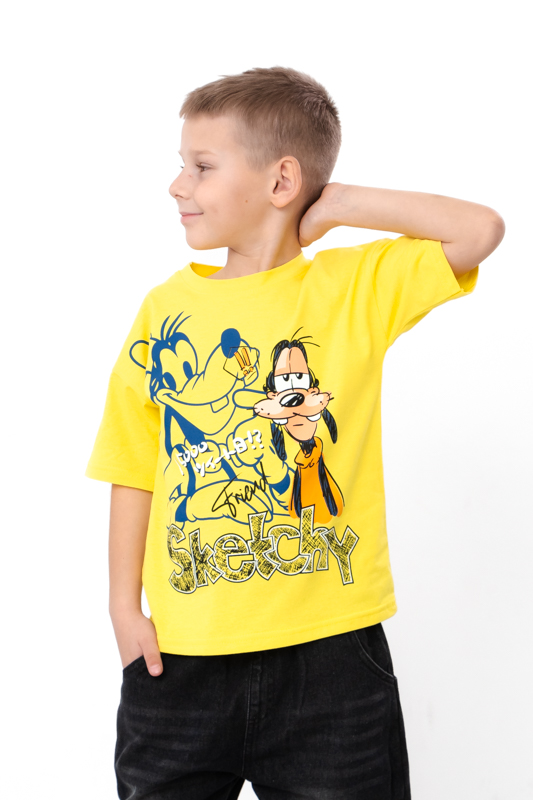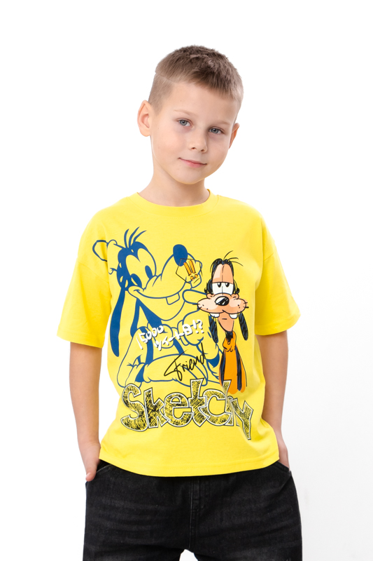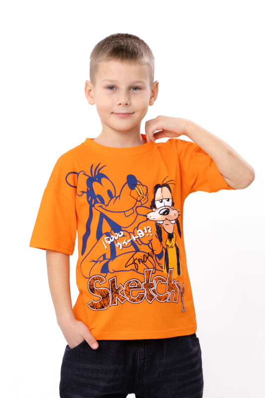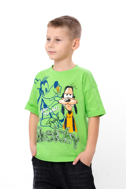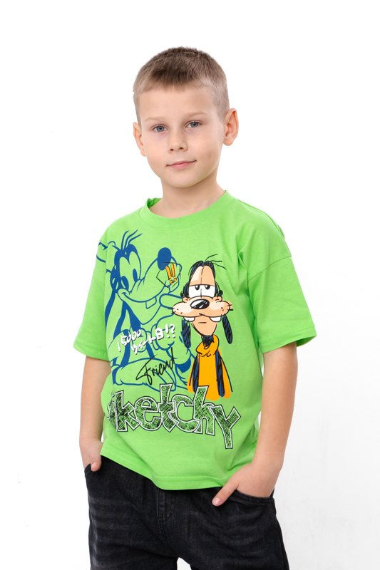 Лаконічна однотонна основа гармонійно поєднується зі стильним принтом, який додає образу індивідуальності та робить річ цікавою для дитини. Малюнок може відображати улюблену тематику, настрій або характер, допомагаючи хлопчику виразити себе через одяг. Зручний прямий крій не сковує рухів, а акуратна обробка горловини забезпечує комфортну посадку без натирання.