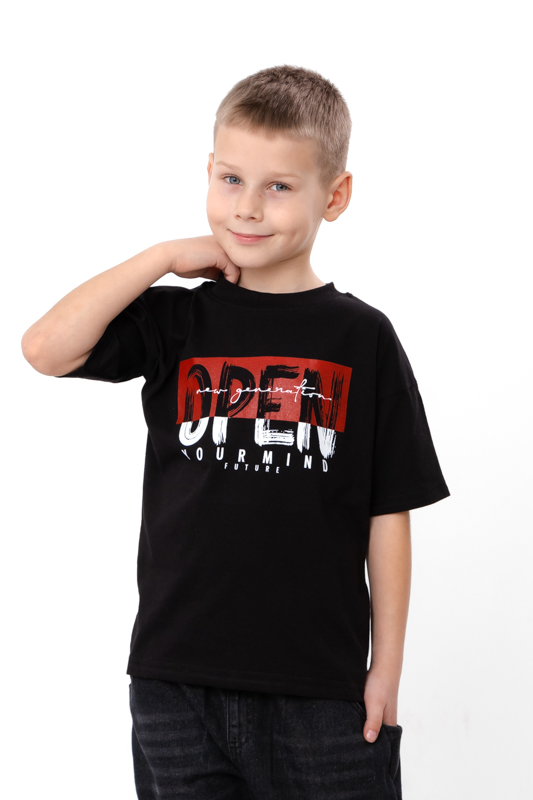Модна та комфортна футболка для хлопчика, виготовлена з однотонного куліру. Ідеальний вибір для щоденного носіння, прикрашена стильним принтом для додаткового шарму. Легко поєднується з іншими елементами гардеробу, підходить для повсякденного носіння та активного відпочинку.