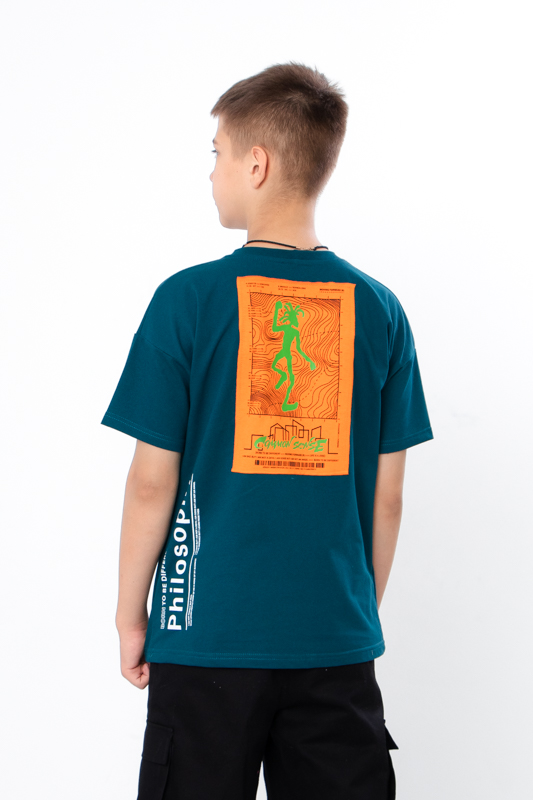 Футболка для хлопчика з накатом - це якісний і зручний одяг, що ідеально підходить для повсякденного носіння. На спині розташований стильний та яскравий накатний малюнок, який надає їй оригінальності. Футболка виготовлена з однотонної двонитки.