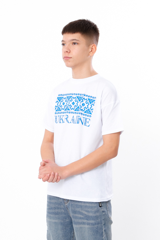 Футболка дитяча з короткими рукавами з натурального бавовняного полотна - кулір. Модель з округлим вирізом. Спереду нанесений актуальний патріотичний принт. Полотно гарної якості, легке, - ідеальний варіант для теплої погоди. Може давати невелику усадку після прання.