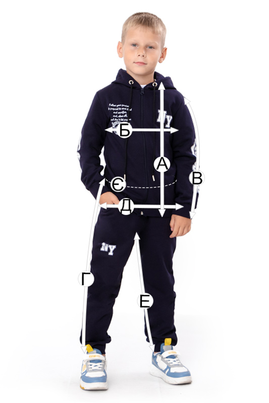 | Зріст | 98 | 104 | 110 | 116 | 122 | 128 | 134 |