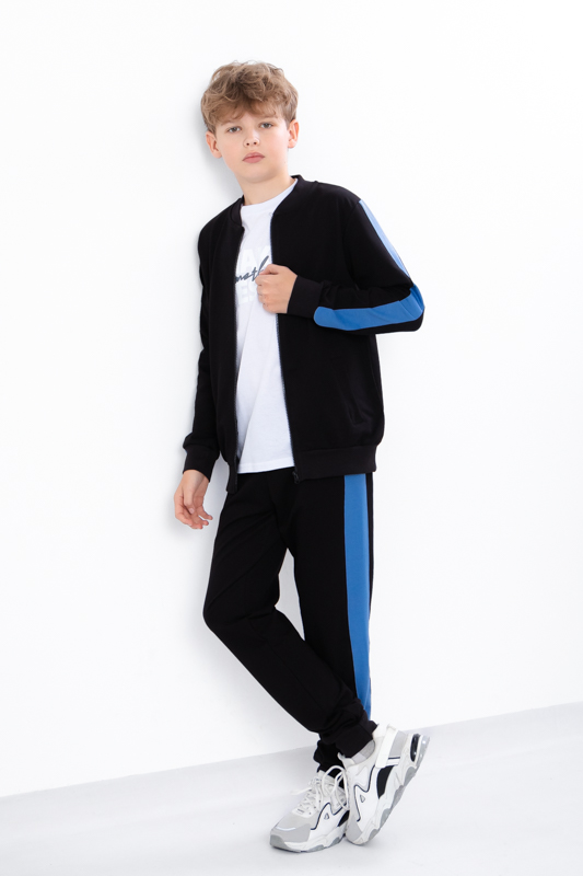 Стильний та зручний костюм з двонитки — ідеальний вибір для активного хлопчика-підлітка. Виготовлений з якісного трикотажного полотна, костюм забезпечує комфорт у щоденному носінні, не сковує рухів і добре тримає форму після прання. Однотонний колір доповнений модними лампасами, які додають динамічного вигляду та спортивного настрою.