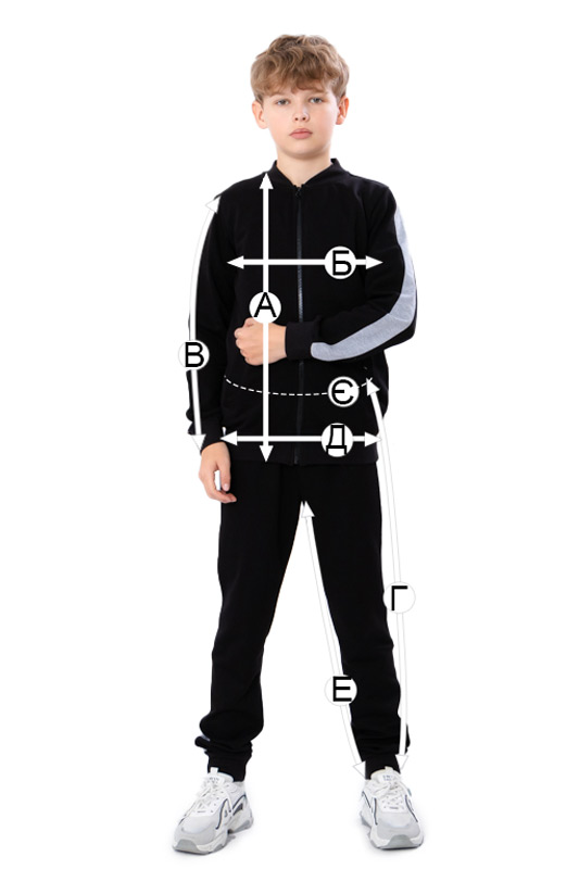 | Г - Довжина штанів по бічному шву, +/-2см | 85 | 89 | 93 | 96 | 100 | 104 |