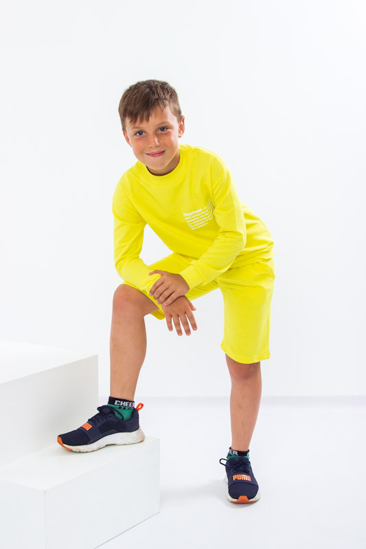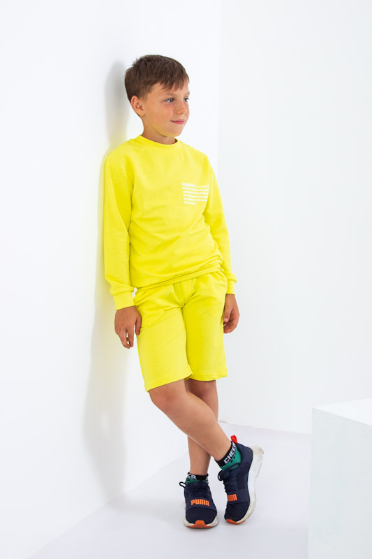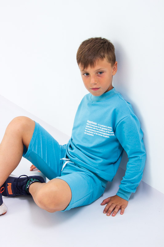 Комплект для хлопчика, що складається зі світшота та шортів з двонитки, — це ідеальне поєднання комфорту, практичності та сучасного стилю для активного повсякденного життя. Такий комплект стане чудовим вибором для прохолодних літніх днів, міжсезоння або вечірніх прогулянок. Завдяки універсальному дизайну його можна носити як вдома, так і на вулицю, у школу, на заняття або в подорожі.