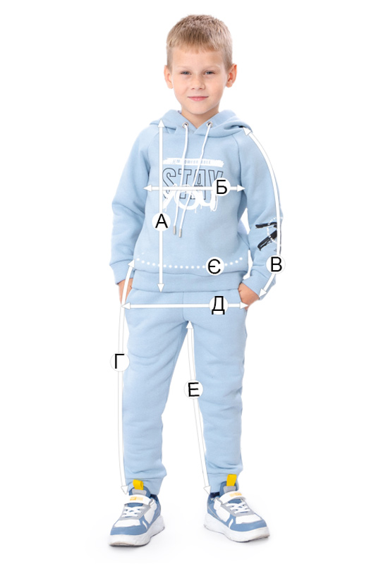 | Г - Довжина штанів по бічному шву, +/-2см | 61 | 64 | 68 | 72 | 76 |