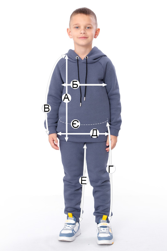 | Г - Довжина штанів по бічному шву, +/-2см | 61 | 64 | 68 | 72 | 76 |
