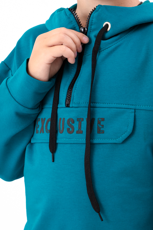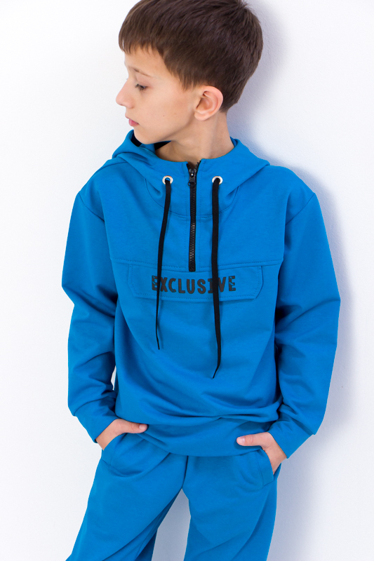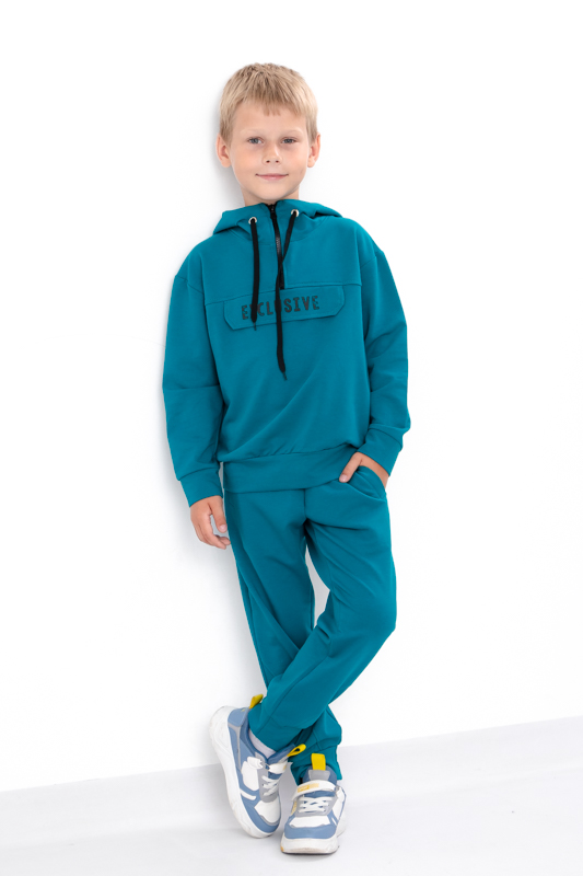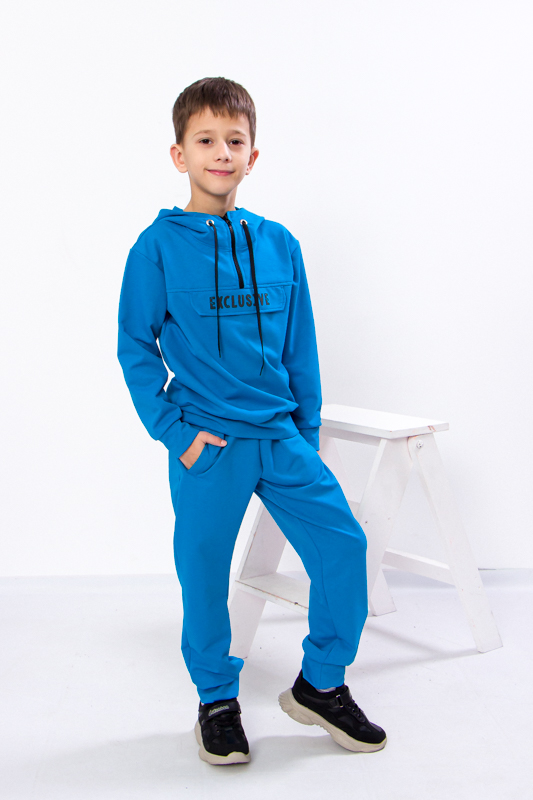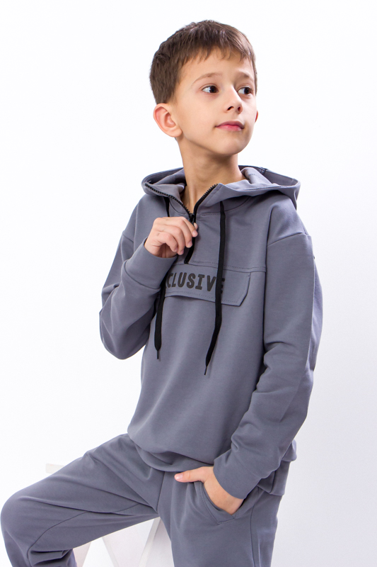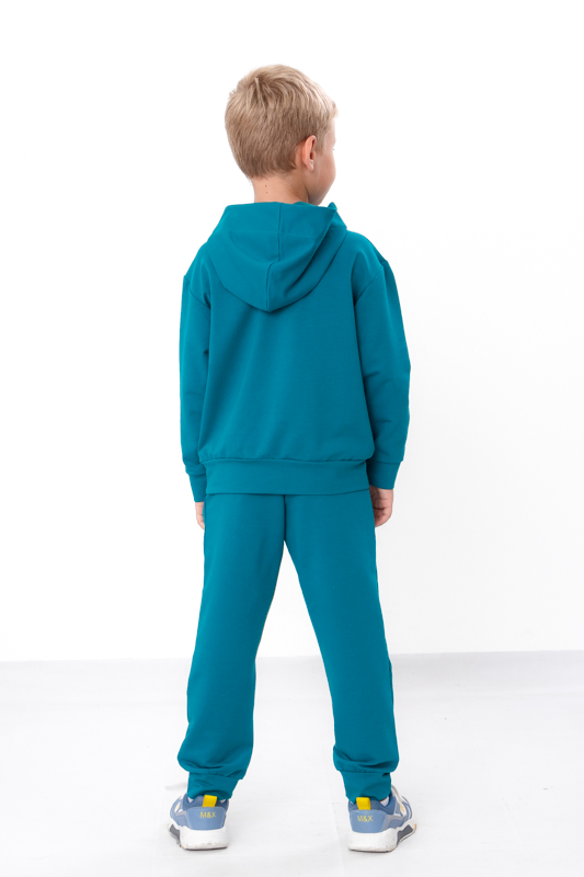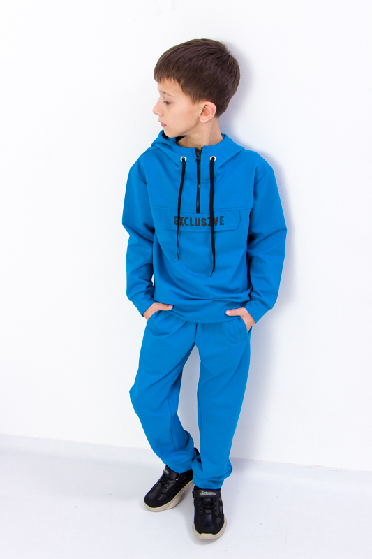 Конструкція передбачає кофту з блискавкою до середини грудей. Манжети на резинці для кращої посадки виробу та тим самим допомагають зберегти тепло. Бічні кишені додають практичності для щоденного використання. Штани мають звужений крій, еластичні манжети, регульований внутрішній шнурок на поясі. Дві косих бічних кишені на брюках. Худі з капюшоном, який регулюється по об»єму шнурком. Не кошлатиться, тримає форму. Виріб декорований термотрансферною печаткою.