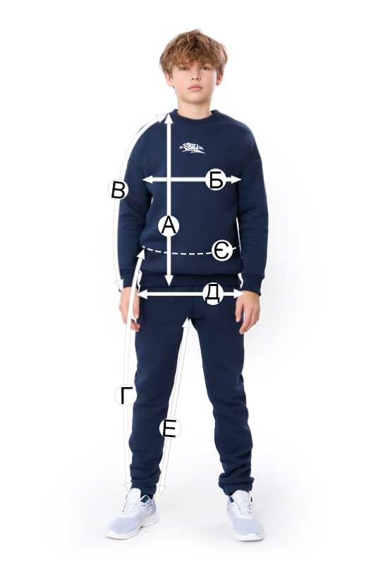 | Е - Довжина штанів по кроковому шву (+/-2см) | 58 | 62 | 65 | 68 | 71 | 74 | 78 |