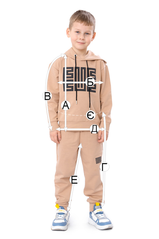 | Г - Довжина штанів по бічному шву, +/-2см | 62 | 66 | 71 | 75 | 79 |