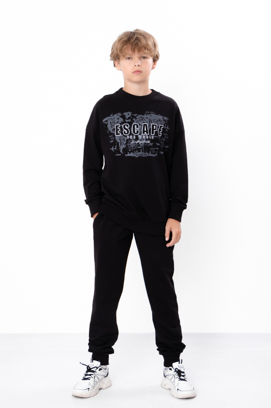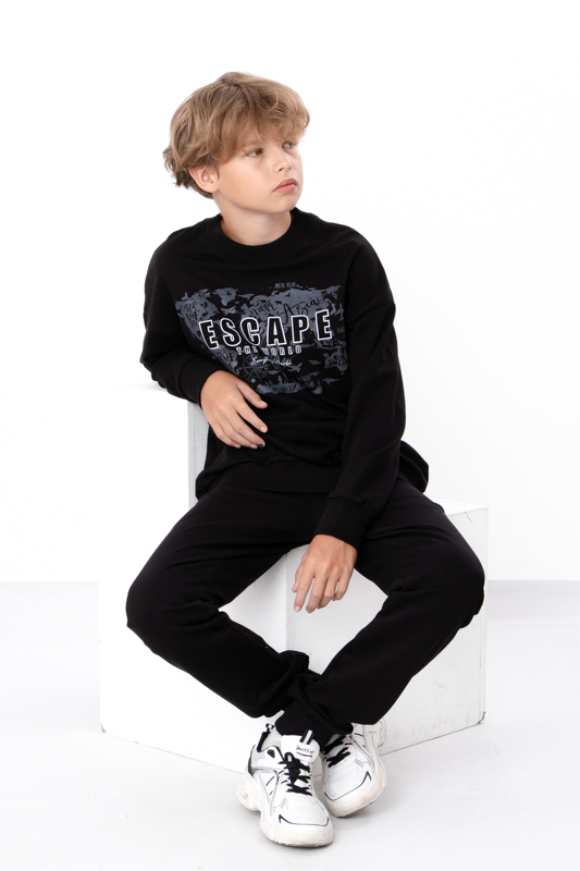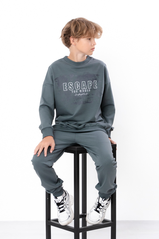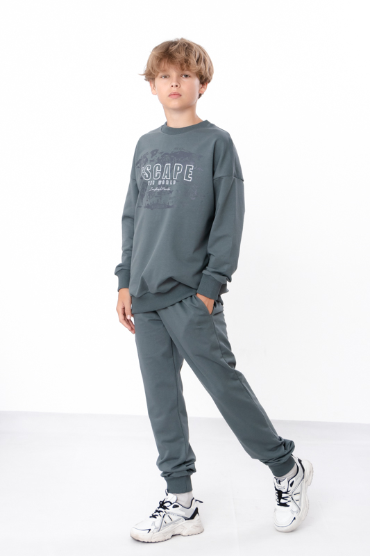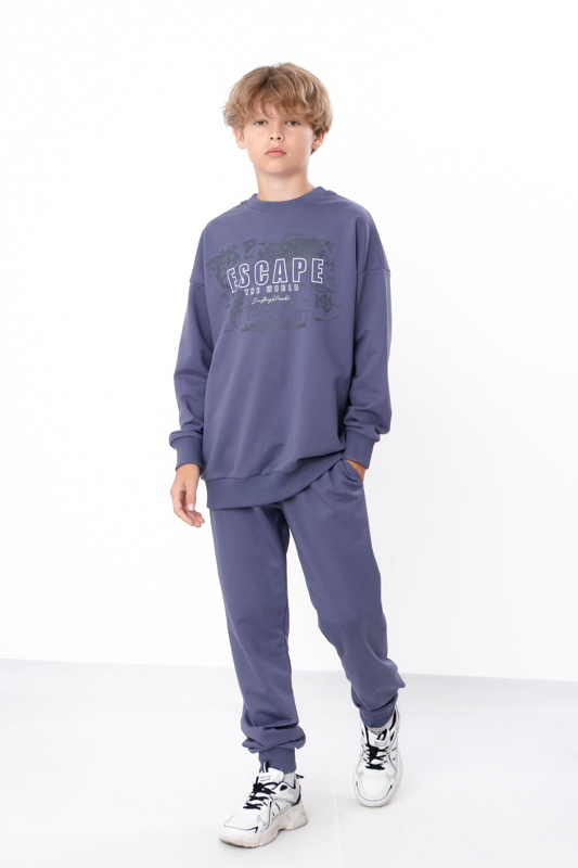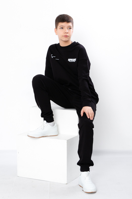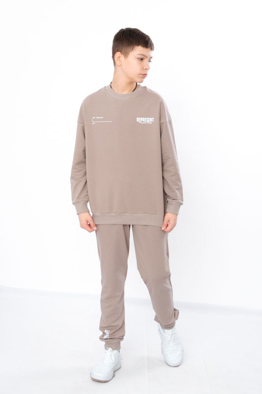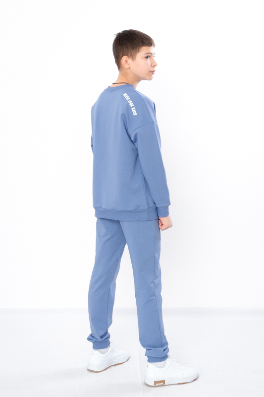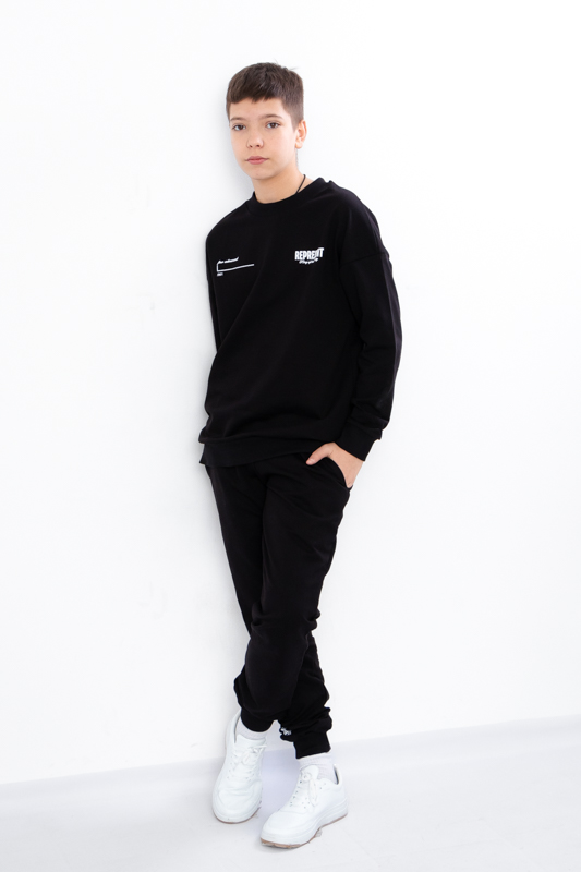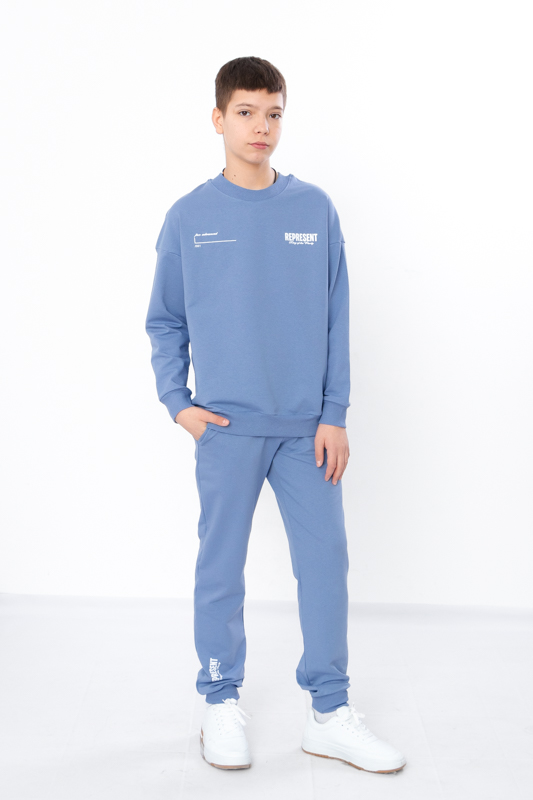 Стильний та зручний костюм складається з джемперу та штанів. Джемпер має вільний крій, округлу горловину. Штани на широкій резинці з кишенями по бокам.Костюм пошитий з однотонної двонитки. Полотно гарної якості. Виріб декорований термотрансферною печаткою.Тому, при правильному догляді, його можна буде носити не один сезон. Може давати усадку після прання.