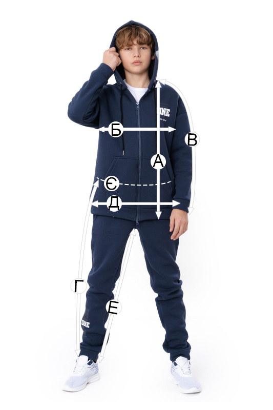| Г - Довжина штанів по бічному шву, +/-2см | 80 | 84 | 88 | 91 | 95 | 99 |