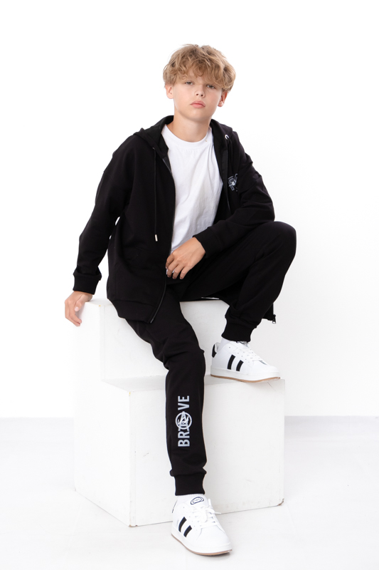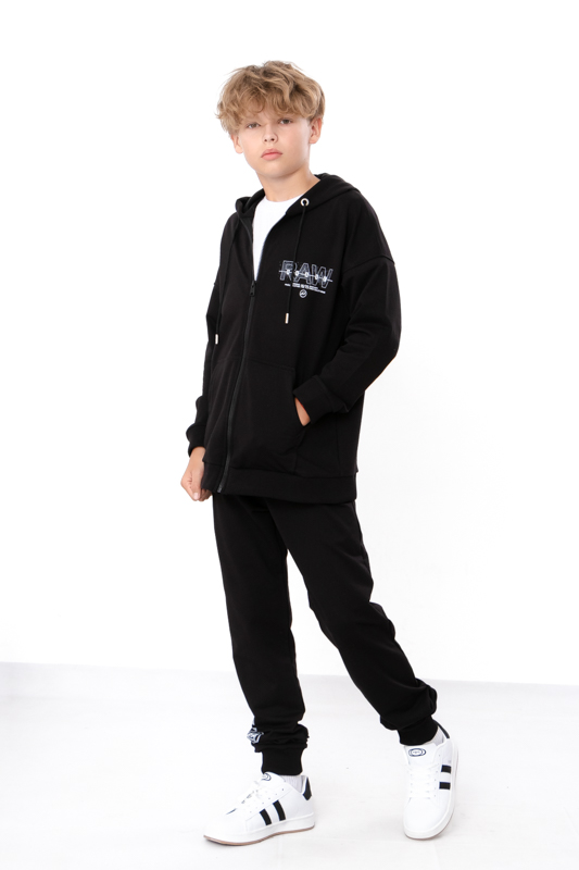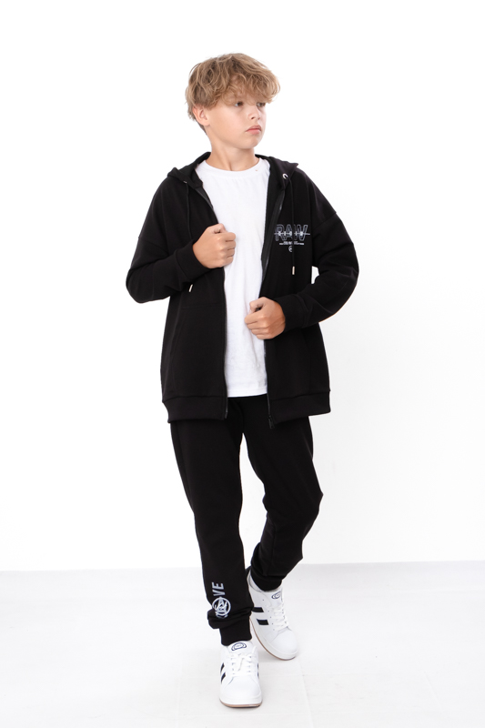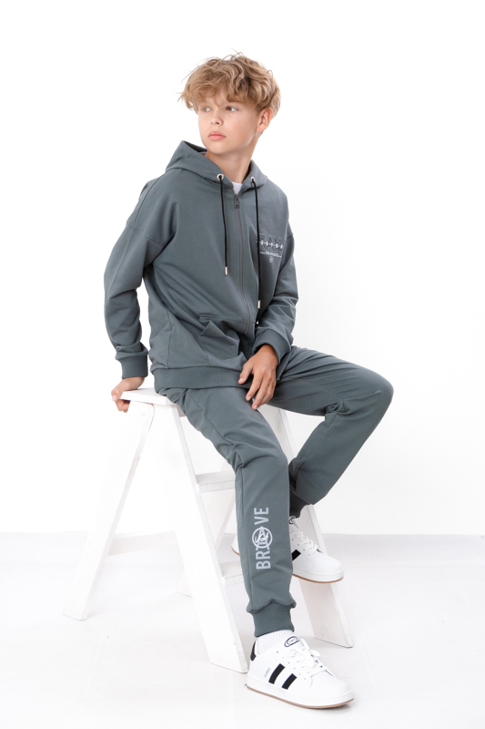 Спортивний трикотажний костюм, що від ТМ “Трикотажний Край” складається з кофти на блискавці з капюшоном та штанів – це вибір активних підлітків, які цінують комфорт, але при цьому також хочуть виглядати модно та стильно. Костюм відрізняється наявністю прорізних кишень, капюшона, а манжети на рукавах по низу виробу і по низу штанів створюють комфорт при носінні. Трендовий фасон сидить вільно. До складу бавовняної тканини для еластичності та зносостійкості додана синтетика. Модна демісезонна двійка на замку ідеально підходить для будь-якої дитини як тренувальна форма для регулярних тренувань у спортзалі, так і для прогулянок.