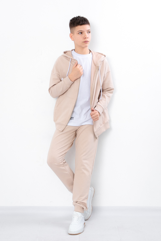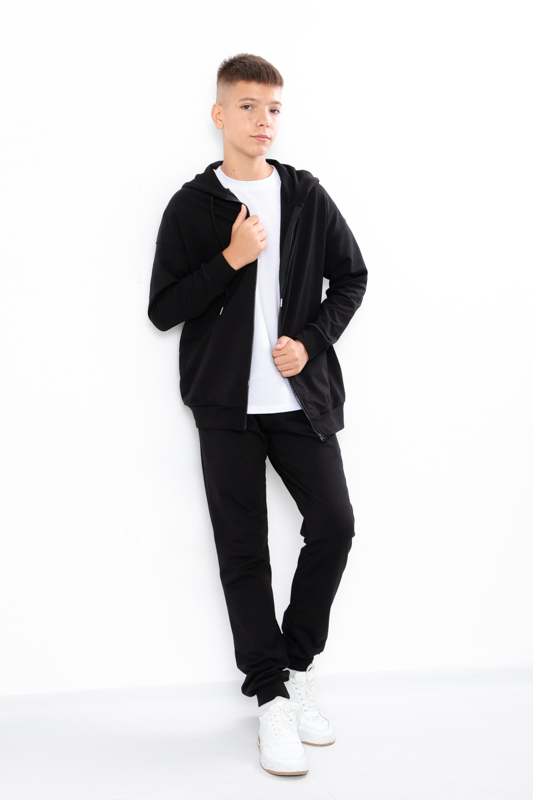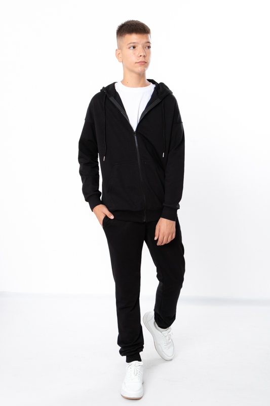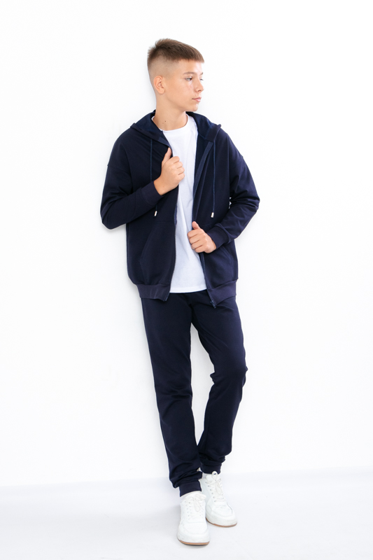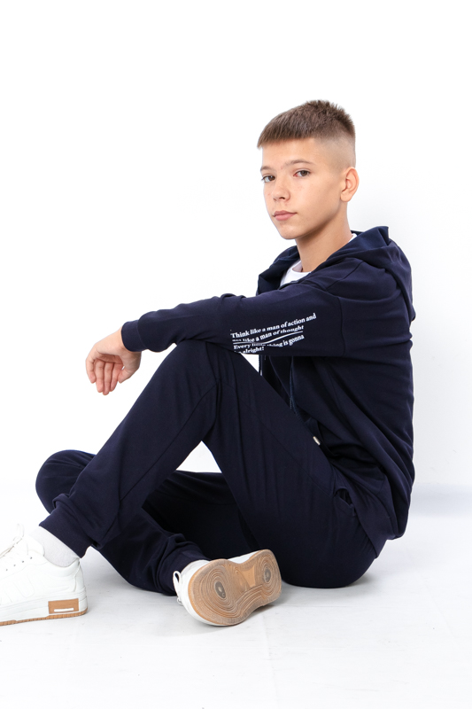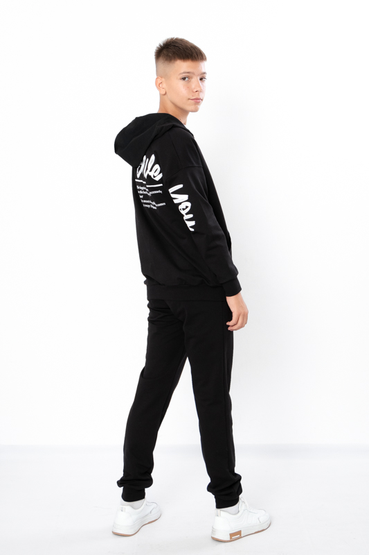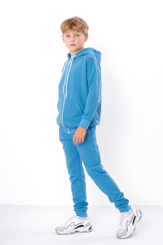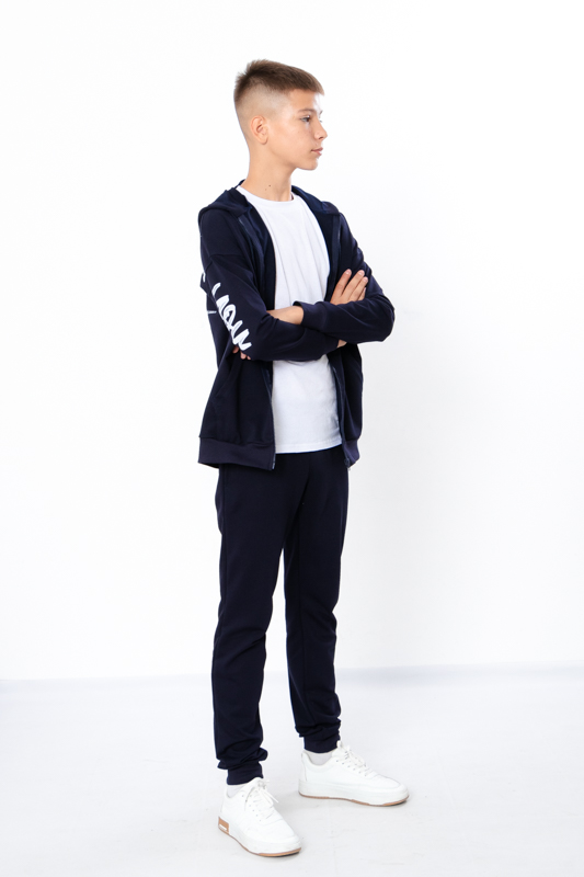 Спортивний трикотажний костюм, що від ТМ “Трикотажний Край” складається з кофти на блискавці з капюшоном та штанів – це вибір активних підлітків, які цінують комфорт, але при цьому також хочуть виглядати модно та стильно. Костюм відрізняється наявністю прорізних кишень, капюшона, а манжети на рукавах по низу виробу і по низу штанів створюють комфорт при носінні. Трендовий фасон сидить вільно. До складу бавовняної тканини для еластичності та зносостійкості додана синтетика. Модна демісезонна двійка на замку ідеально підходить для будь-якої дитини як тренувальна форма для регулярних тренувань у спортзалі, так і для прогулянок. Модний та зручний костюм для підлітків – тренд сезону 2024 року, чудовий вибір для демісезонного гардеробу. Принт на спинці та рукавах ззаду.
