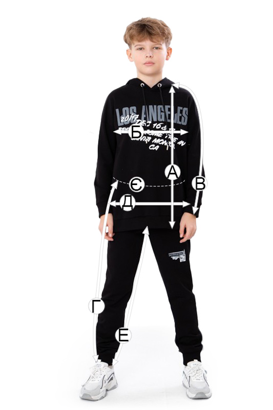 | Г - Довжина штанів по бічному шву, +/-2см | 84 | 88 | 92 | 96 | 100 | 104 |