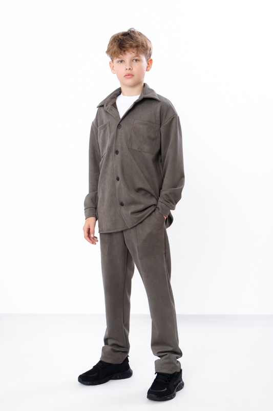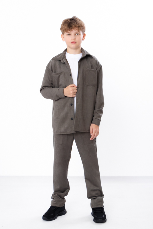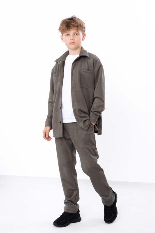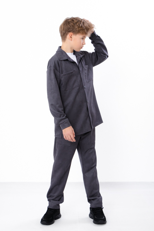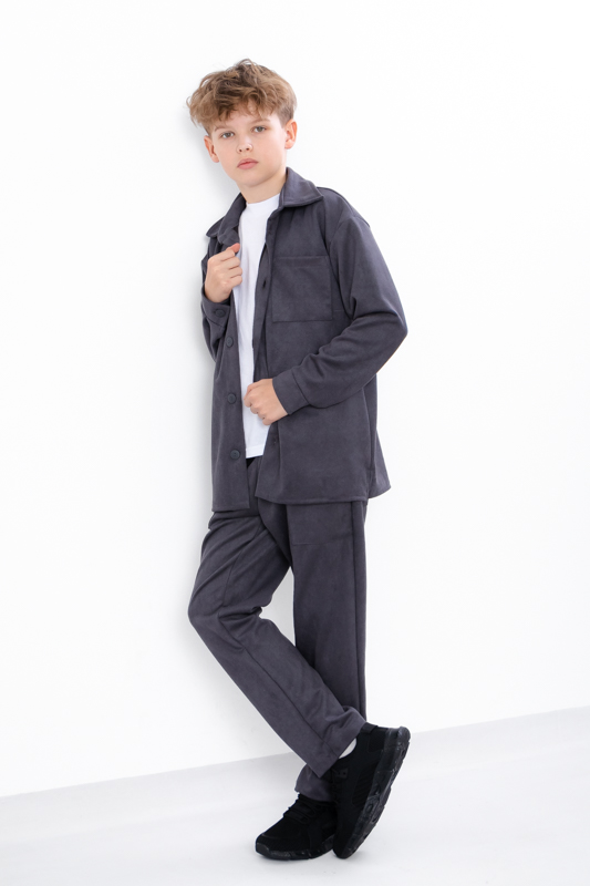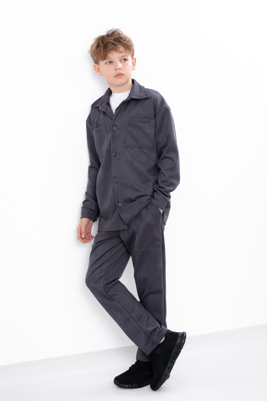 Цей стильний костюм стане незамінною річчю у гардеробі хлопчика . Він складається з двох елементів – сорочки на ґудзиках з накладними кишенями та штанів прямого крою з еластичною резинкою на поясі та зручними кишенями. Завдяки високоякісному замшу костюм не тільки виглядає ефектно, а й дарує комфорт протягом усього дня.Ви можете носити комплект разом для створення гармонійного образу або комбінувати кожну деталь окремо, додаючи власного стилю.Цей костюм – ідеальний вибір для тих, хто цінує якість, стиль і зручність у повсякденному житті. Він чудово підходить для прогулянок, школи, зустрічей з друзями чи подорожей.