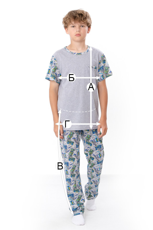 Піжама для хлопчика від українського бренду Трикотажний Край - прекрасний варіант нічного комплекту для вашого хлопчика. В такому одязі активній дитині буде зручно відпочивати. Піжама м'яка і приємна на дотик. Її прямий крій гарантує свободу рухів уві сні і гарне прилягання. Піжама складається з футболки та штанів. Штани фіксуються на талії завдяки м'якій резинці на поясі. Футболка має класичну круглу горловину і короткий рукав. Модель сірого кольору прикрашена нагрудною кишенею. Для пошиття виробу використано високоякісний бавовняний матеріал. Полотно на натуральній основі - дихаюче, гіпоалергенне, м'яке і ніжне.