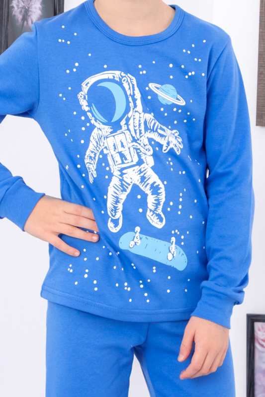 Ця піжама для хлопчиків створена для юних мрійників, які хочуть поринути в світ космічних пригод. Виготовлена з м'якого та еластичного інтерлока, що забезпечує комфорт і свободу рухів під час сну. Яскравий принт космонавта або захоплюючий напис додають стильного вигляду і роблять цю піжаму улюбленою у будь-яку пору року.Тепер кожен вечір, ніч і ранок будуть ще світліші, приємніші і добріші.