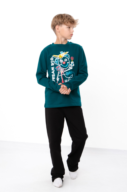 Солодкий сон дитини багато в чому залежить від якості обраного нічного одягу. Забезпечить максимальний комфорт під час відпочинку піжама для хлопчика від відомого українського бренду «Трикотажний Край». Що складається з штанів і кофти з круглим вирізом і довгими рукавами. Комплект виконаний в контрастних тонах, а кофта в свою чергу прикрашена оригінальним принтом. Завдяки вільному крою, якісному пошиттю та натуральной тканиниі відчувати себе в піжамі дитина буде комфортно - ніщо не потривожить її сон. Виготовлений одяг з матеріалу, що складається з натуральних бавовняних волокон - він дуже приємний на дотик, має гарну повітропроникність і гігроскопічність. Оцінять батьки також зносостійкість тканини - вона не втрачає яскравість кольору і первинні властивості навіть після численних прасувань.