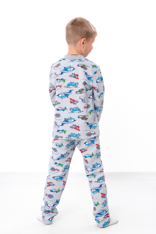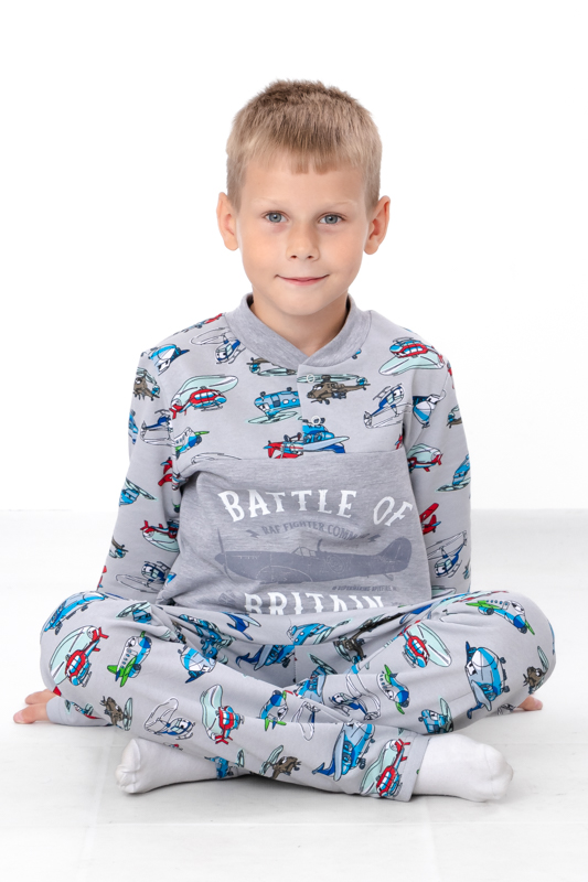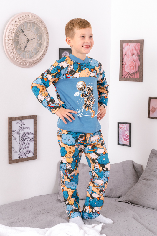 Модель складається з кофти на кнопках, що легко та швидко застібається, — зручно навіть для найменших хлопчиків або для самостійного одягання. Штанці мають еластичний пояс, що м’яко облягає талію, не перетискаючи та не створюючи дискомфорту. Манжети на рукавах і штанинах добре фіксують виріб, не дозволяючи тканині задиратися під час сну.