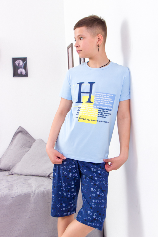 Модна та комфортна піжама для підлітків, що складається з футболки та шортів. Принт з надписами додає стильного вигляду, а м’який матеріал забезпечує комфорт під час сну та відпочинку. Ідеальний вибір для спокійних ночей або активного відпочинку вдома.Продукція від фірми-виробника Трикотажний Край - це яскравий, стильний і якісний одяг. Якщо ви в пошуках універсального комплекту, зверніть увагу на симпатичну модель.