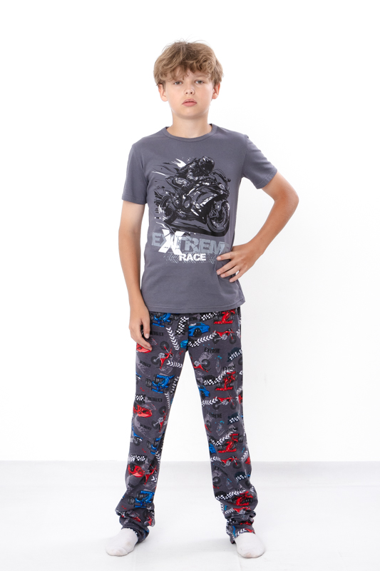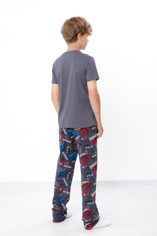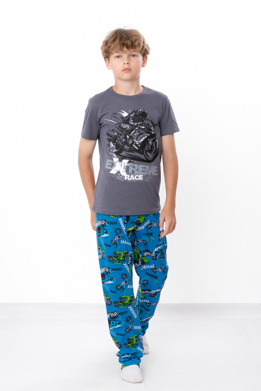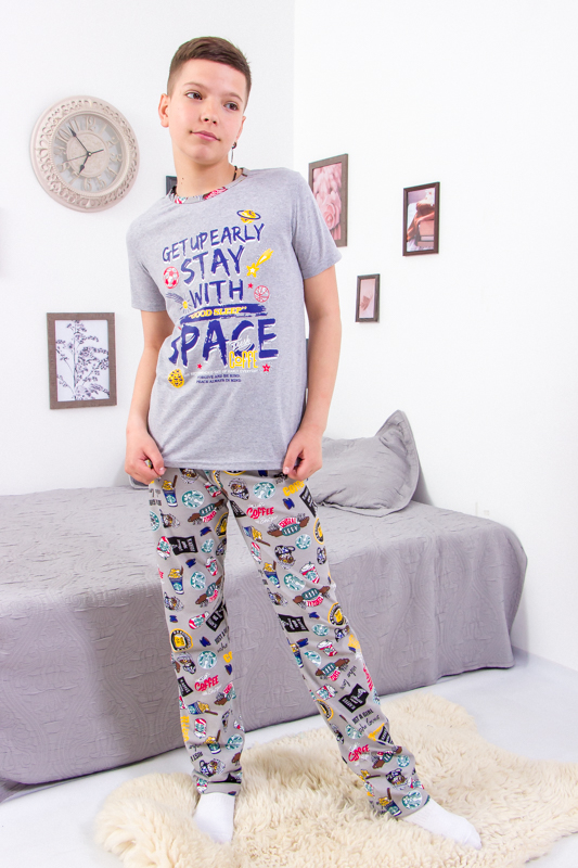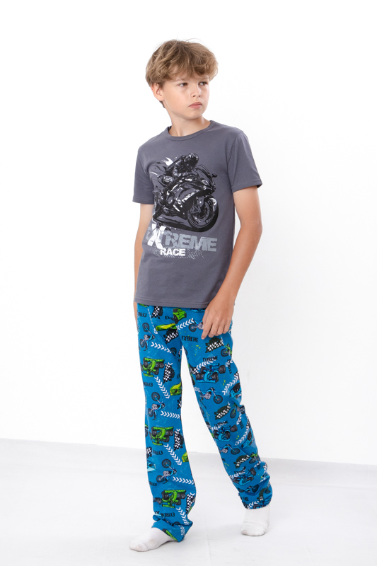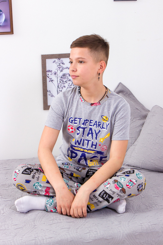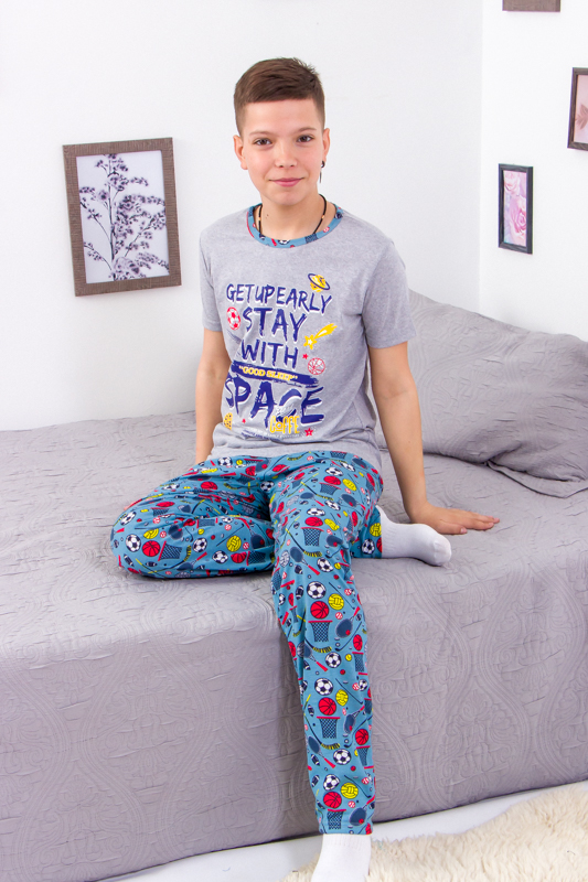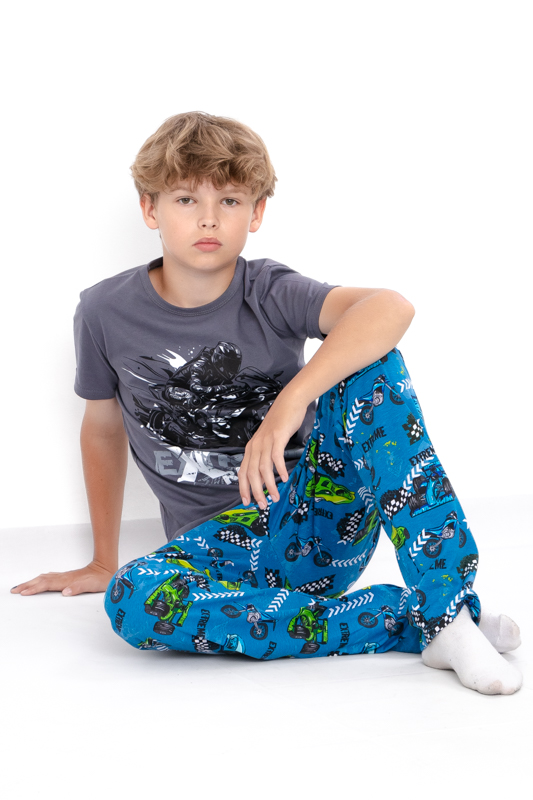 Зручна та комфортна піжама для хлопчиків, виготовлена з м'якого та дихаючого куліру — ідеальний вибір для ночівлі або відпочинку вдома. Кулір забезпечує м'якість і еластичність, не обмежуючи рухів, а також добре зберігає форму після прання.Набір складається з футболки з коротким рукавом і штанів вільного крою.Піжамка зшита з 100% бавовняного полотна - кулір. Матеріал міцний, м'який і не вибагливий у догляді. Його можна прати при температурі 30 ° C і прасувати праскою, вибравши 110 ° C на регуляторі.