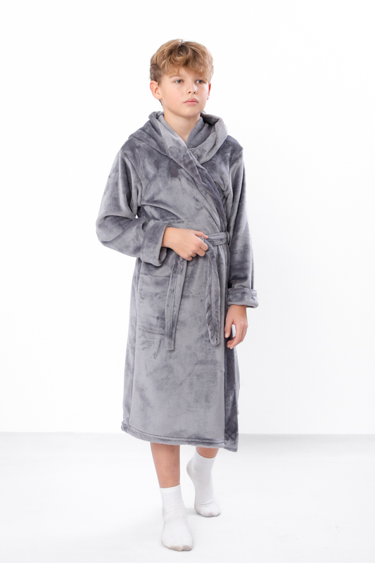 Халат махровий на запах із капюшоном, пояс у комплекті.
