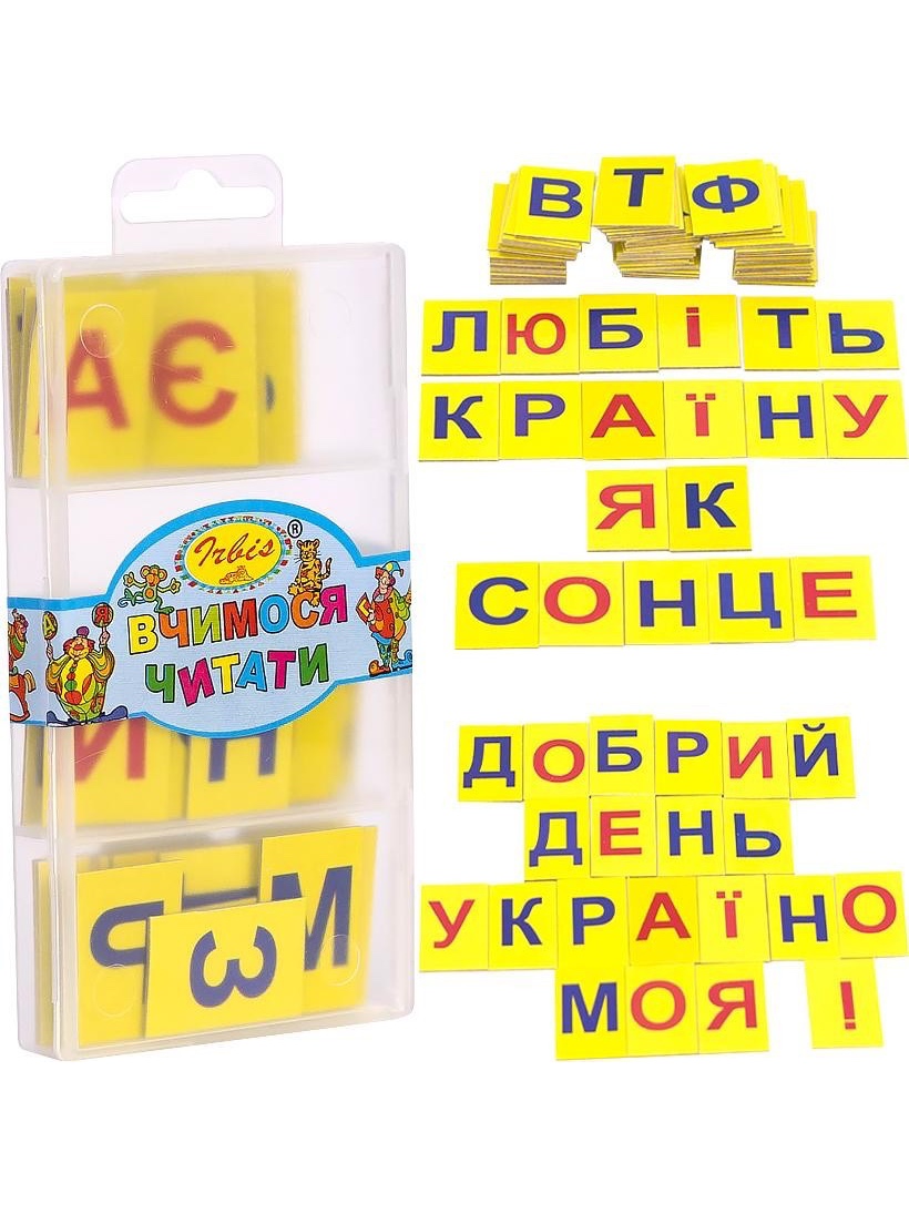 Набір пластикових українських літер і розділових знаків у пластиковому контейнері. Звуковий аналіз букв, слів і речень.