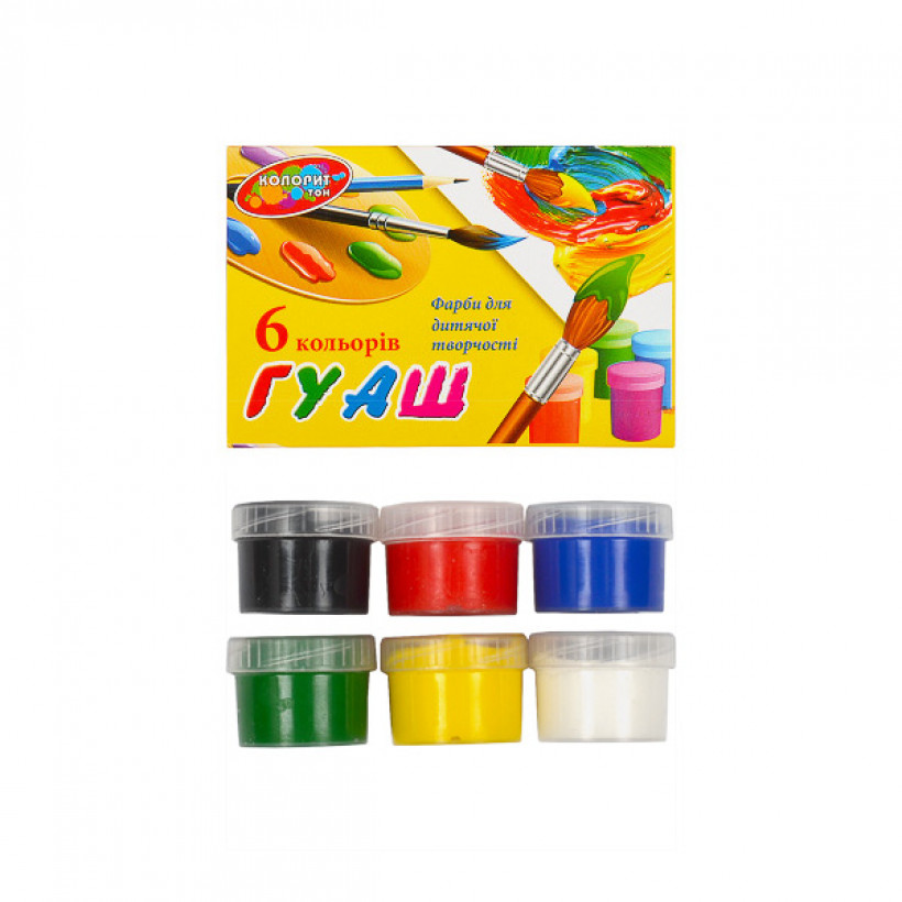 Для дитячої творчості, 6 кольорів. Гуашшю можна працювати не тільки на папері, а й на полотні, на тканині, картоні, фанері.