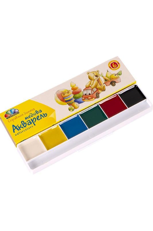 Акварель 6 кольорів, медова, в картонній упаковці.