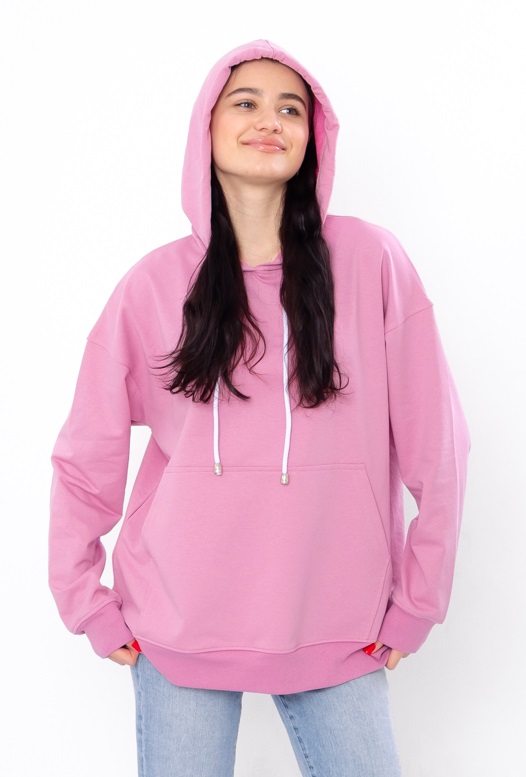 Однотонне забарвлення додає універсальності: худі легко поєднується з джинсами, спортивними або трикотажними штанами, лосинами, а також може стати стильною парою до спідниці. Така модель — ідеальна база для створення образів у стилі кежуал, спорт-шик або мінімалізм. Вона дає змогу експериментувати з аксесуарами та взуттям, створюючи щоразу нові поєднання.