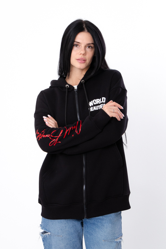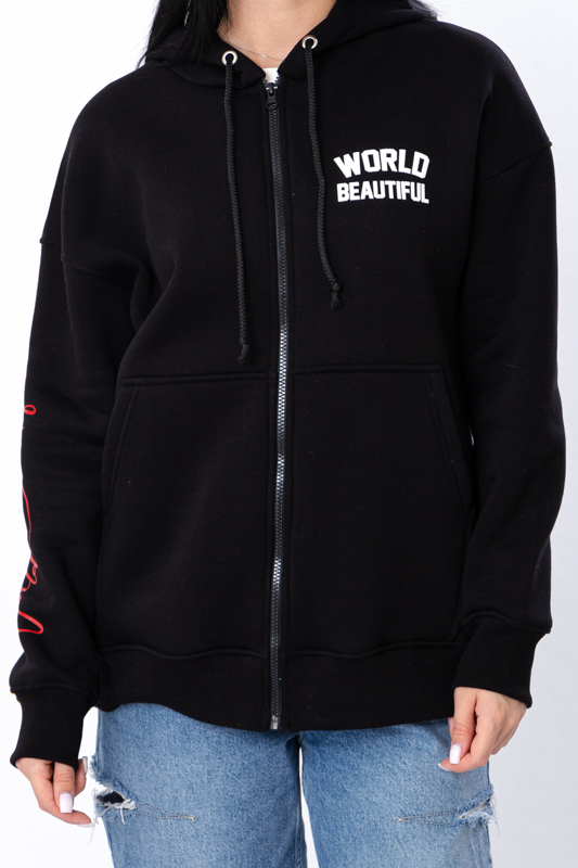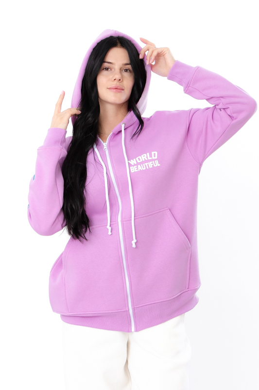Жіноче оверсайз Zip-худі на блискавці — це стильний і практичний вибір для активного відпочинку та повсякденного використання. Виготовлене з щільної трьохнитки (80% бавовна, 20% поліестер), худі забезпечує тепло та комфорт у прохолодну погоду. Модель має довгі рукави, просторий капюшон і кишеню типу "кенгуру", що роблять його ще зручнішим.