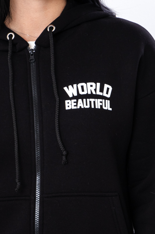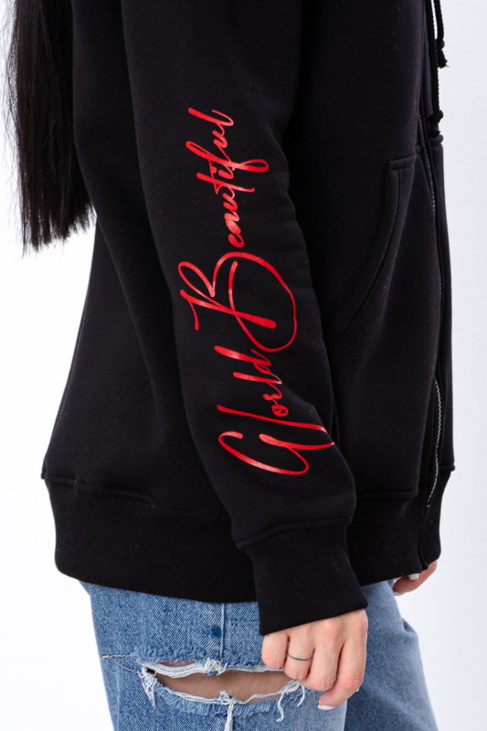 Zip-худі має стильний принт на грудях і рукаві, що додає модного акценту та робить річ більш оригінальною. Принт надає худі унікальності та дозволяє поєднувати його з різноманітними елементами гардеробу, створюючи сучасні та ефектні образи.