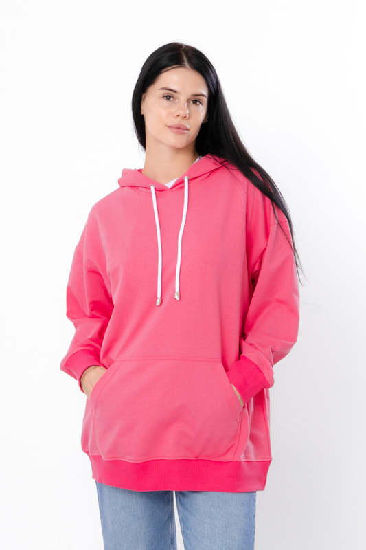 Стильне жіноче худі оверсайз із однотонної двонитки — ідеальний вибір для повсякденного носіння. Завдяки вільному крою, худі забезпечує максимальний комфорт та свободу рухів. Великий капюшон надає моделі спортивного вигляду, а містка кишеня "кенгуру" додає практичності. М'яка тканина двонитка приємна до тіла, добре зберігає тепло, роблячи цей виріб відмінним вибором як для спорту, так і для прогулянок у прохолодну погоду.